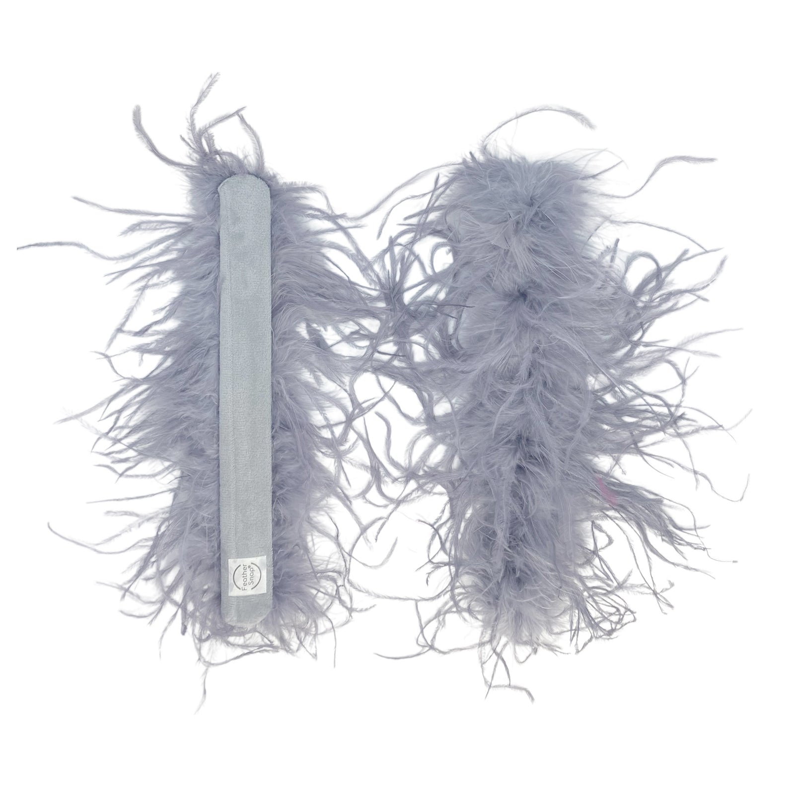 Ein wunderschönes Paar JUMBO-Manschetten aus flauschigen hellgrauen Straußenfedern für die Handgelenke. Für sofortigen Glamour zu jedem Outfit.